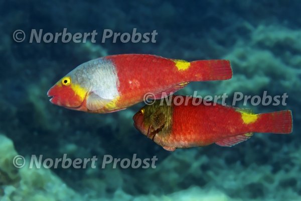 Europäischer Papageifisch (Sparisoma cretense), zwei, Paar, Insel Korfu, Ionische Inseln, Griechenland, Ionisches Meer, Mittelmeer | Mediterranean parrotfisch (Sparisoma cretense) two, couple, Corfu island, Ionian Islands, Greece, Ionian See, Mediterranean Sea