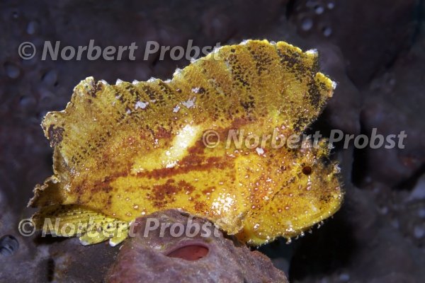 Schaukelfisch oder Blattfisch (Taenianotus triacanthus), gelb, Wakatobi Island, Tukangbesi Archipel, Wakatobi National Park, UNESCO Weltnaturerbe, Banda See, Südost-Sulawesi, Indonesien | Yellow Leaffish (Taenianotus triacanthus), yellow, Wakatobi Marine Park, UNESCO, World Heritage Site, Banda Sea, Southeast-Sulawesi, Indonesia