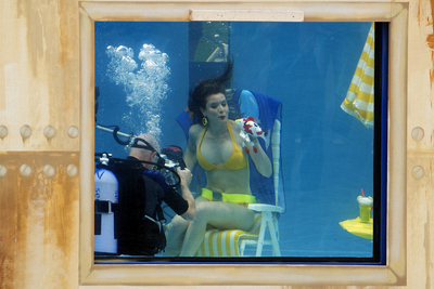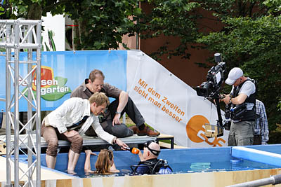 Live Interview und UW-Foto-shooting im ZDF-Fernsehgarten mit Model Alexa von Busse.