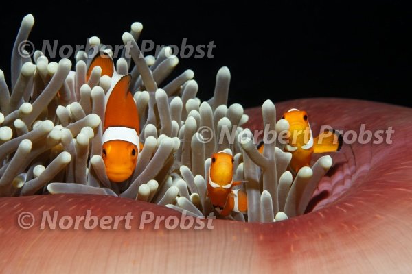 Drei, Westlicher Clownfisch, (Amphiprion ocellaris) Anemonenfisch, Nemo, Anemone, (Heteractis magnifica) Bali, Insel, Kleine Sundainseln, Bali See, Indonesien, Indischer Ozean, Asien | Three, Western clown-anemonefish, (Amphiprion ocellaris) anemonefish, nemo, anemone, (Heteractis mafnifica, Bali, island, Lesser Sunda Islands, Bali Sea, Indonesia, Indian Ocean, Asia