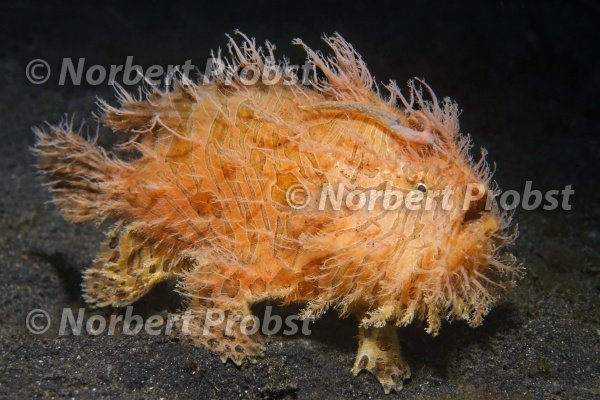 Zottiger Anglerfisch (Antennarius hispidus), Gangga Insel, Bangka Inseln, Nord Sulewesi, Indonesien, Molukkensee, Pazifik, Asien | Hispid Anglerfish (Antennarius hispidus) on sandy bottom, Gangga Island, Bangka Islands, North Sulawesi, Indonesia, Molukka Sea, Pacific, Asia