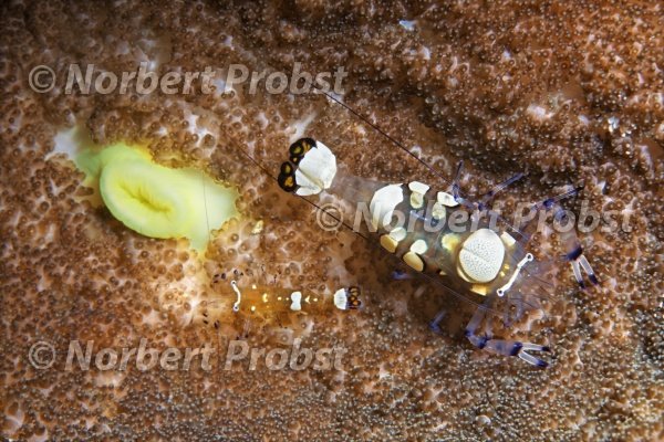Paar Partnergarnelen (Periclimenes brevicarpalis), Anemone, Gangga Insel, Bangka Inseln, Nord Sulawesi, Indonesien, Molukkensee, Pazifik Asien | Couple partner shrimps (Periclimenes brevicarpalis), sea anemone, Gangga island, Bangka islands, North Sulawesi, Indonesia, Molukka Sea, Pacific, Asia