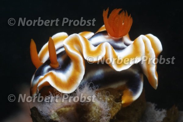 Gelb-Schwarz-Weiße Chromodoris Prachtsternschnecke (Chromodoris magnifica), Sabang Beach, Puerto Galera, Insel Mindoro, Philippinen, Indik | Yellow-black-white Chromodoris Nudibranch (Chromodoris magnifica), Sabang Beach, Puerto Galera, Mindoro island, Philippines, Indik