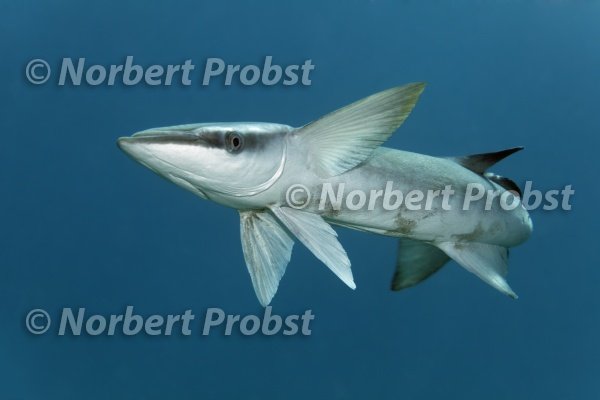 Gestreifter Schiffshalter (Echeneis naucrates) schwimmt im blauen Wasser, Makadi Bay, Hurghada, Ägypten, Rotes Meer, Afrika | Slender Suckerfish (Echeneis naucrates) schwimmt im blauen Wasser, Makadi Bay, Hurghada, Egypt, Red Sea, Africa