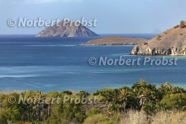 Künstenlandschaft mit vorgelagerten Inseln, Komodo Nationalpark, Unesco Weltnaturerbe, Insel Komodo, Kleine Sundainseln, Indonesien | Coastline with small islands, Komodo National Park, Unesco World Hertage Site, Komodo Island, Lesser Sunda Islands, Indonesia