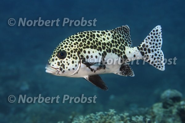 Halbwüchsige Tupfen-Süßlippe (Plectorhinchus chaetodonoides), Sabang Beach, Puerto Galera, Insel Mindoro, Philippinen, Indik | Adolecent Spottet Sweetlip (Plectorhinchus chaetodonoides), Sabang Beach, Puerto Galera, Mindoro island, Philippines, Indik